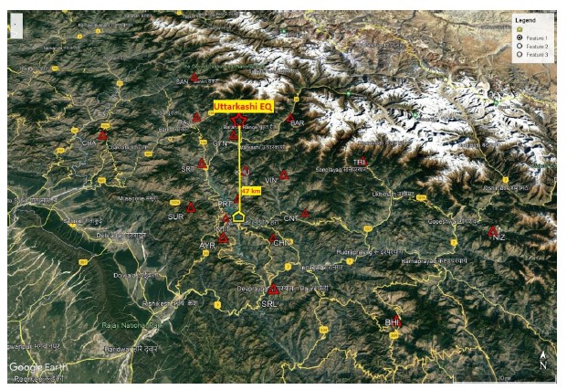 An earthquake of 2.3 magnitude has been occurred in Uttarkashi. The location of this earthquake falls about 47 km N from Tehri dam. This earthquake has been located through Seismological network stations.