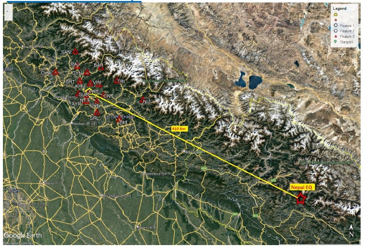An earthquake of 5.6 magnitude has been occurred in, Nepal. The location of this earthquake falls about 410 km NE from Tehri dam. This earthquake has been Recorded through Seismological network stations.